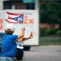 Featured Image Caption: Person Waving Ohio State Flag at Street Intersection